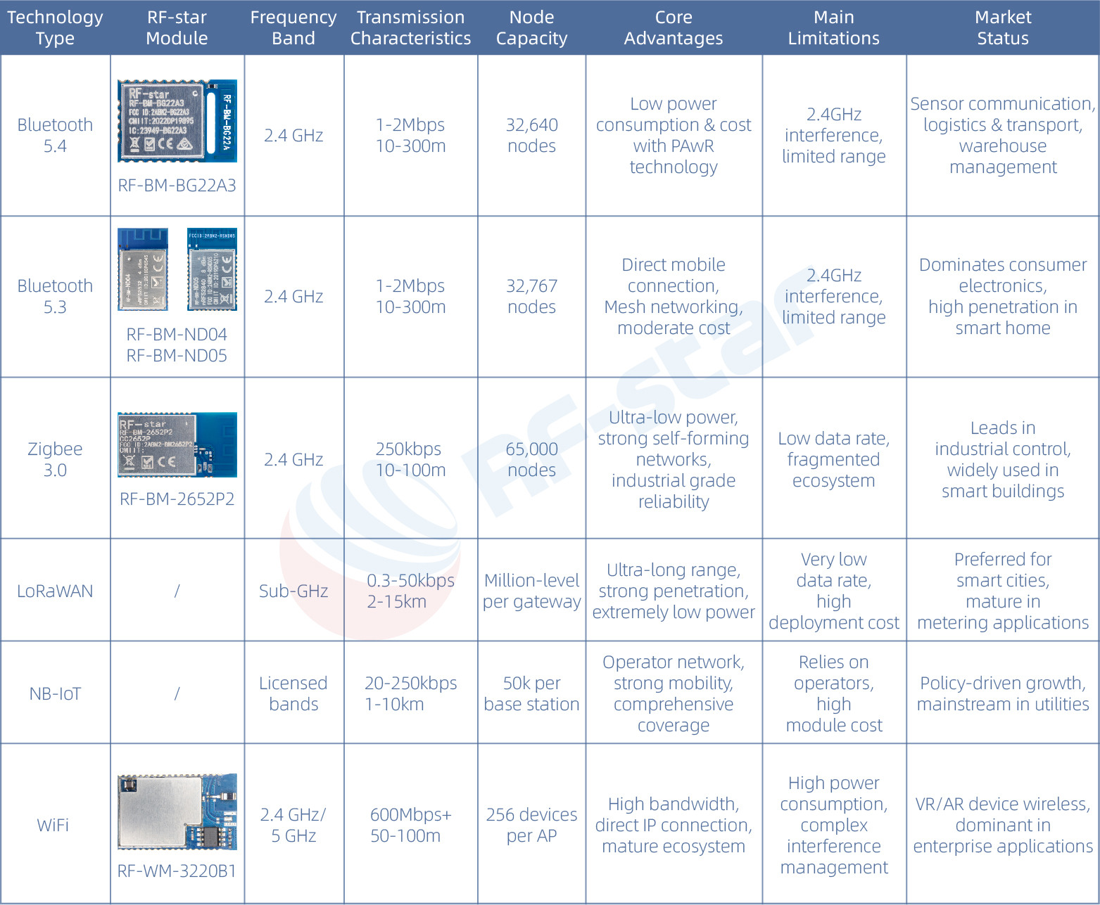 PAwR technology represents a fundamental breakthrough in wireless sensor networks. Through a modular product strategy, RF-star is pushing this technology into practical application. From Bluetooth Low Energy to ZigBee, then to LoRa and NB-IoT, each technology has played a significant role in specific scenarios but also faces its own limitations. The emergence of PAwR, particularly the optimized implementation by RF-star, is expected to find a new balance between connection density, power consumption, and cost.